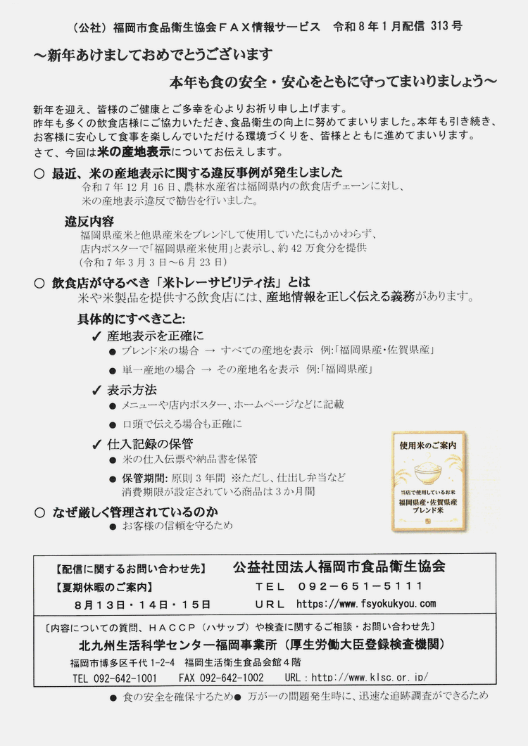 福岡市食品衛生協会FAX情報サービス